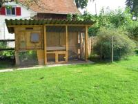Exemplary chicken coop in Switzerland with New Hampshire, Lakenvelder,
