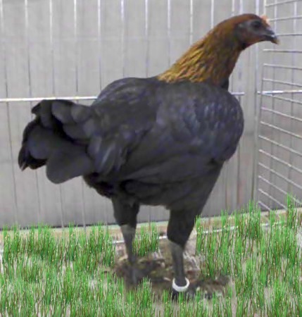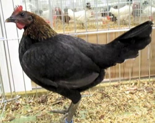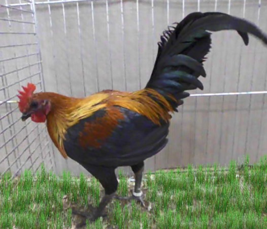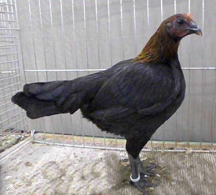 Vechthoen goudberken, Gamle Engelske Kamphøns sort orangebrystet,