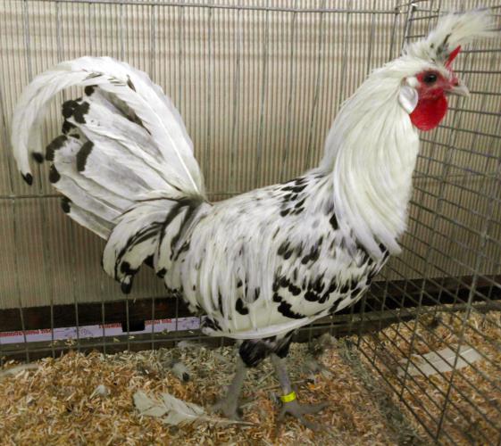 Appenzeller Spitzhauben silber-schwarzgetupft, Landesgeflügelschau Ulm 2012 |
