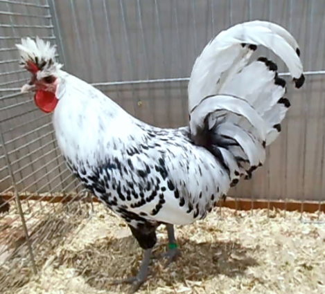 Appenzeller Spitzhaube silber-schwarzgetupft, Landesgeflügelschau Ulm 2012 |
