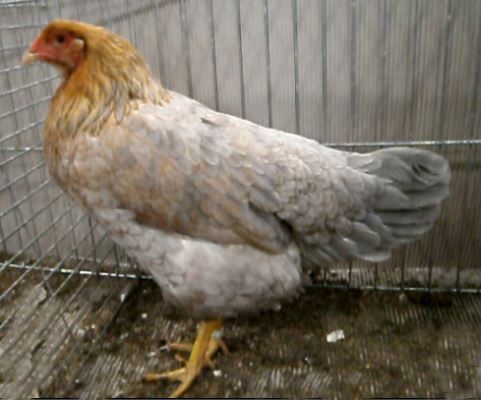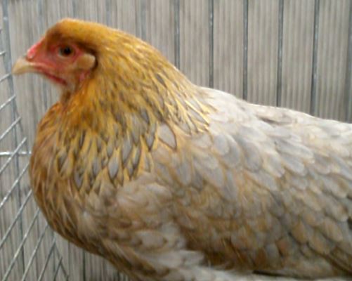 kokoshka DE zlatisto-sin, Kraienkoppe albastră cu gât auriu.