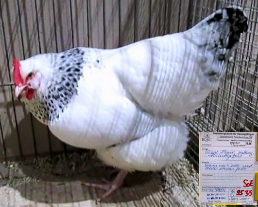 Niederrheiner weiß-schwarzcol.-gesperbert, lange Version,