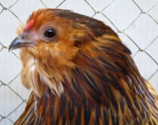 Antwerpener Bartzwerg wachtelfarbig, Henne, Landesgeflügelschau