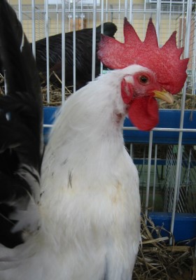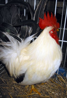 Chabo-Henne weiß mit schwarzem Schwanz, Exposition Avicole Wintzenheim 2011