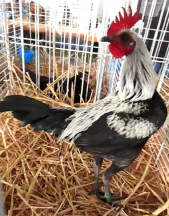 Combattant Anglais Moderne noir à camail argenté et poitrine liserée Exposition Avicole Illfurth 2011