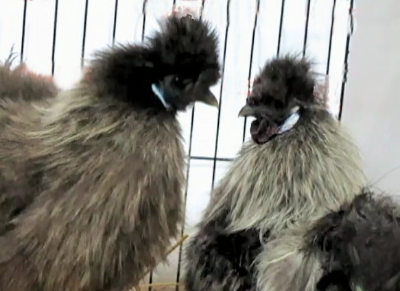 zilverpatrijs met baard, Dværg-Silkehøns sølvgrå og Broget, Jedwabiste