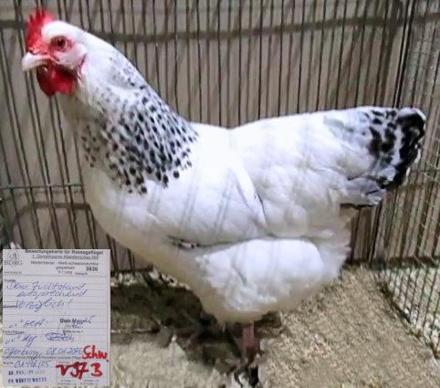 Niederrheiner weiß-schwarzcol.-gesperbert, kurze Version,